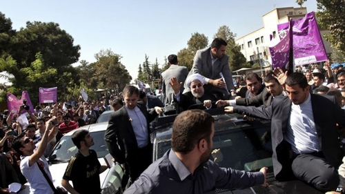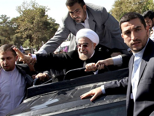 Khi đoàn xe hộ tống Tổng thống Rouhani ra khỏi sân bay Mehrabad ở thủ đô Tehran, khoảng 60 - 70 người Hồi giáo theo đường lối cứng rắn đã hô vang những khẩu hiệu “Mỹ chết đi”, “Israel chết đi”…