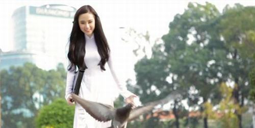 H́nh ảnh diện áo dài ngây thơ, trong sáng hiếm hoi của Phương Trinh