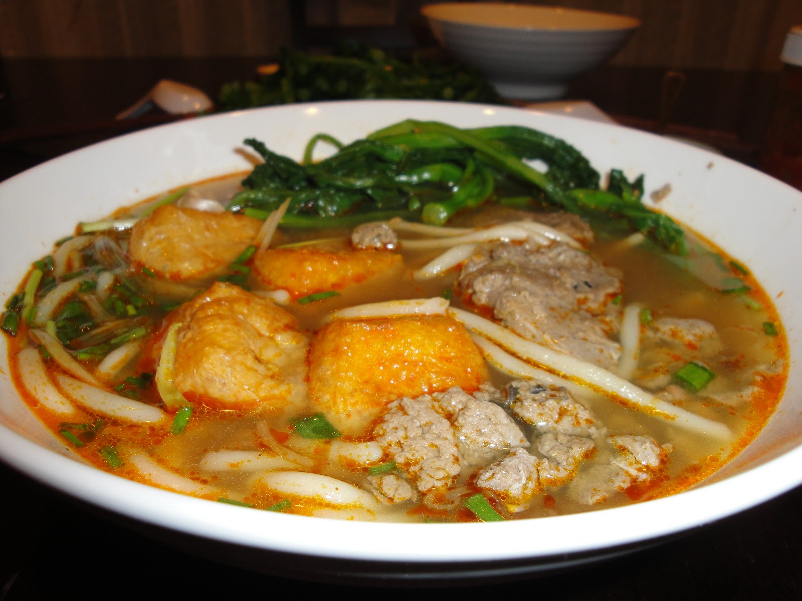 Đối với người VN thì canh bún là đây. Giống như bún riêu nhưng rau muống được luộc chín.
