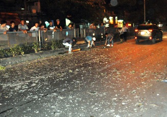 Sau vụ nổ, nhiều mảnh vụn rơi đầy đường.