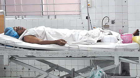 Cha: anh Nam tại khoa hồi sức cấp cứu Bệnh viên Đa khoa An Giang - Ảnh: Thoại Sơn
