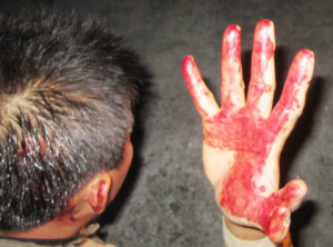 “Đến nơi, mấy chú dắt cháu vào phòng, bắt cháu đứng trước bàn và liên tục nạt nộ. Sau đó hai chú công an vừa quát vừa đánh cháu. Một chú lấy cái gậy đen ngắn (dùi cui) đánh liên hồi vào mông và đùi cháu, còn chú kia dùng chân đạp và đá cháu. Cháu càng kêu đau các chú ấy càng đánh mạnh”, Phát – cháu bé 11 tuổi, bị mấy công an thành phố Huế đánh như tra tấn trong khoảng 30 phút – kể lại khi đang nằm cấp cứu ở một bệnh viện tại Huế.