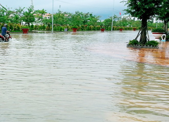 Cơn mưa cực lớn lúc rạng sáng kết hợp với triều cường khiến hầu hết các tuyến đường trong nội đô thành phố Bạc Liêu ngập sâu trong nước từ 0,4-0,6 m.