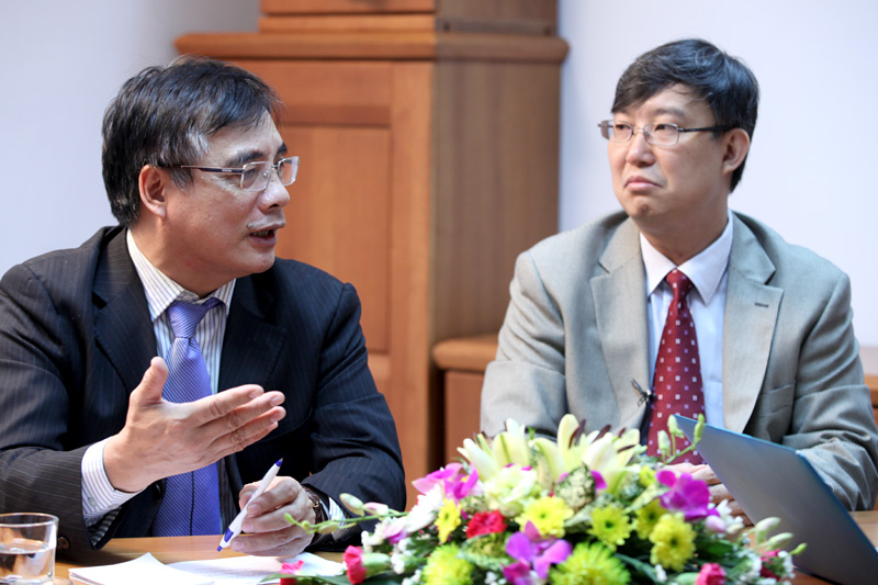 Ts Trần Đình Thiên, Viện trưởng Viện Kinh tế VN và Nguyễn Xuân Thành, Giám đốc FETP. Ảnh: Lê Anh Dũng