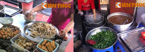 Các nguyên vật liệu được bày ngay trước cửa và làm phở ngay trước mặt khách hàng.