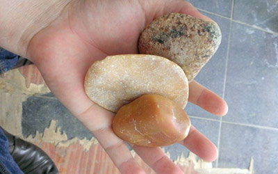 Các mẫu đá sỏi mà con buôn Trung Quốc thu mua, đặt hàng. (Hình: Dân Việt)