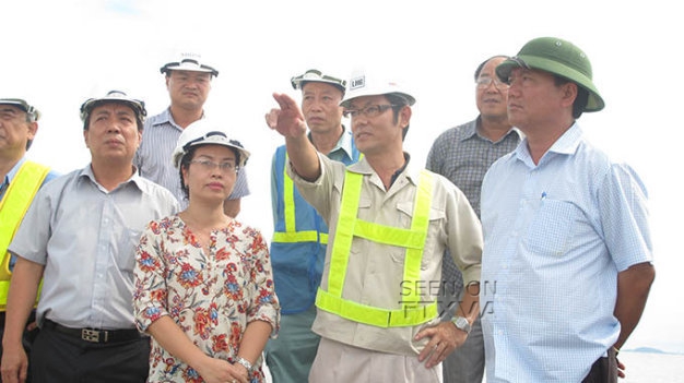 Bộ trưởng Đinh La Thăng (bìa phải) kiểm tra tiến độ thi công đường cao tốc Hà Nội – Hải Phòng – Ảnh: T.Hoàng