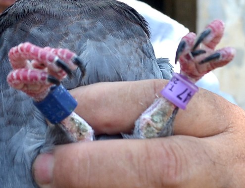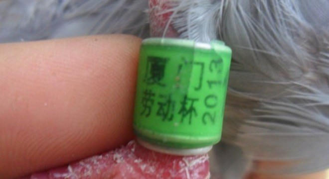 Chiếc vòng đeo ở chân bồ câu có chứa ký tự lạ.