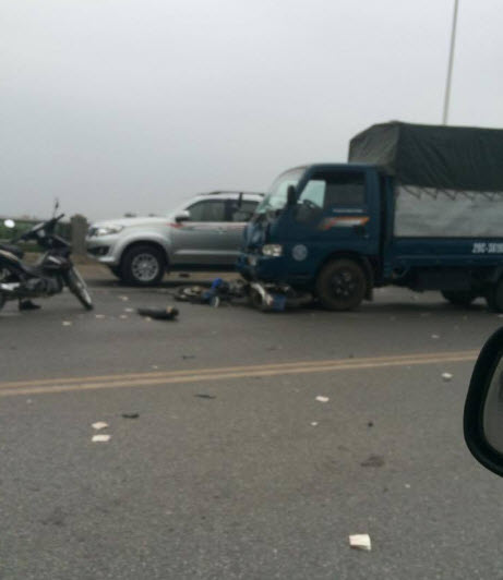 Khoảng 15 giờ chiều nay (1.12), trên cầu Vĩnh Tuy, Hà Nội xảy ra vụ tai nạn kinh hoàng giữa xe tải và xe máy, làm người đi xe máy chết tại chỗ.