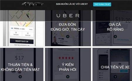 Trang chủ của Uber hiển thị tiếng Việt nhằm thu hút "đối tác" và người đi xe, dù bản thân Uber chưa hiện diện tại Việt Nam theo đúng quy định. Lối kinh doanh thiếu tôn trọng quốc gia sở tại khiến Uber vấp phải làn sóng "tẩy chay".