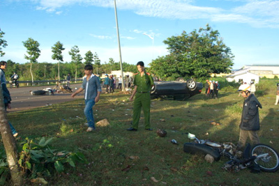 Tại hiện trường, chiếc xe gây tai nạn lật nhào, chổng bốn bánh lên trời, hư hỏng nặng, 5 xe gắn máy của các dân quân cũng hư nát. Thời điểm xảy ra tai nạn chiếc xe chạy rất nhanh vì đang đà xuống dốc. Sau khi tông vào đám đông, chiếc xe hơi còn làm gãy một cây xanh rồi tông bật trụ đèn cao áp và lật ngửa. (Tr.N)