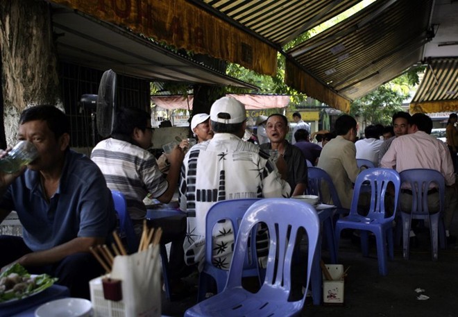 Người dân Hà Nội ăn, uống trong một quán bia. Ảnh: AP