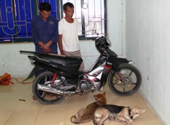 Hai tên trộm chó bị Cảnh sát cơ động - Công an Thanh Hóa bắt giữ ngày 12-8-2-2014