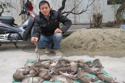 Trần Quang Thiều cho biết, ông cũng nhận được rất nhiều hợp đồng thuê diệt chuột cho các bệnh viện, khách sạn, nhà hàng, trường học hay các trụ sở công quyền. “Trong lần đỉnh điểm, chúng tôi bắt được khoảng 300 kg chuột trong một đêm tại khu nghỉ dưỡng ở Hà Nội”, ông Thiều tự hào nói. Ảnh: Lao Động