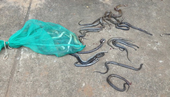 Người dân cho hay đã bắt lại hơn 100 con rắn trong đó có rắn nước.