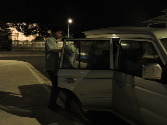 Cơ quan công an dẫn Điểm ra xe để vào trại tạm giam