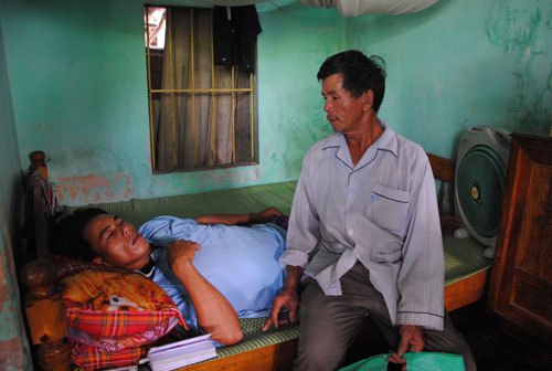 Anh Cương nằm điều trị tại nhà một thời gian dài sau khi nhập viện vì bị 3 công an đánh vô cớ