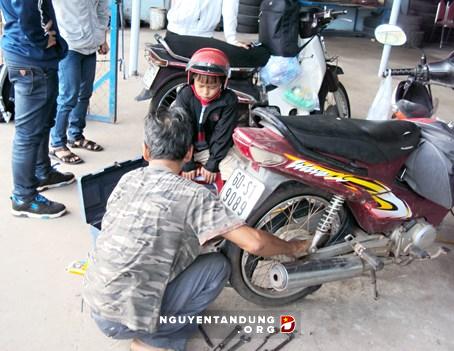 Xe máy cán phải đinh dễ dàng tìm được chỗ sửa xe giá cao “mọc” rất nhiều trên quốc lộ 51.
