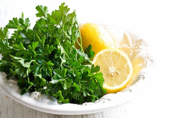 Chuyển chanh và mùi tây vào nồi với nước. Đặt nồi trên lửa nhỏ và nấu 2-3 giờ. Lọc dung dịch sau khi nó được thực hiện xong.