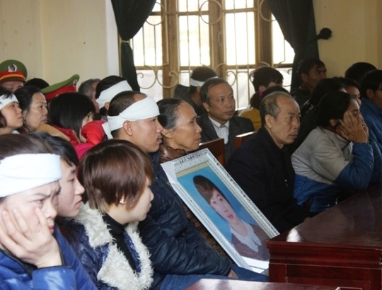 Gia đình người bị hại đau đớn ôm di ảnh nạn nhân Dương Thị Hồng Ngọc tại phiên tòa