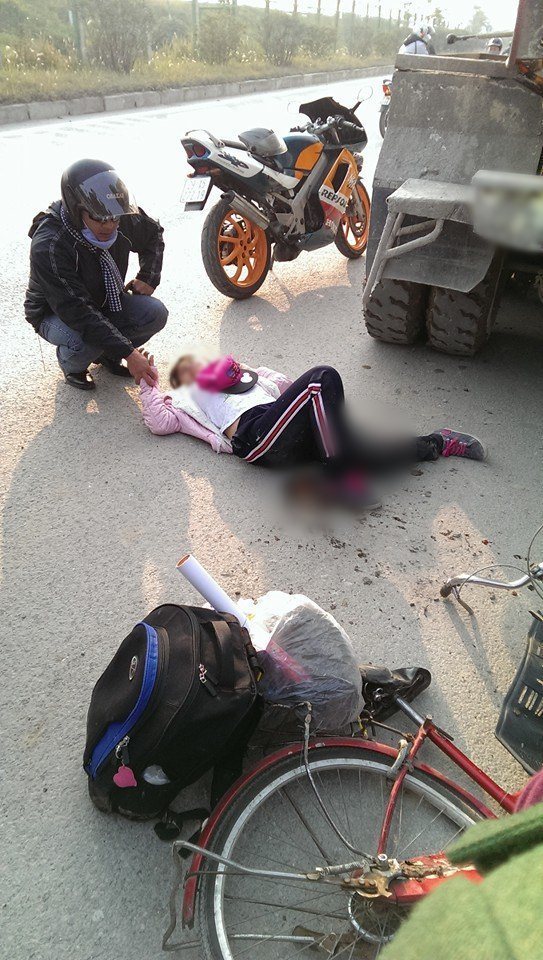 Ngày hôm qua, tại cầu vượt An Khánh trên đường cao tốc Láng Hòa Lạc đã xảy ra vụ tai nạn giữa ô tô và xe đạp. Theo như chia sẻ của người chứng kiến và đăng ảnh lên một diễn đàn nổi tiếng, xe bê tông lùi nhanh không quan sát, đâm thẳng vào cô gái, khiến cô bị gãy chân.