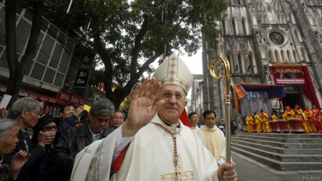 Hồng Y Fernando Filoni, Tổng trưởng Bộ Truyền giáo Vatican, đang ở thăm Việt Nam, gây hy vọng cải thiện quan hệ giữa Hà Nội và Tòa Thánh.