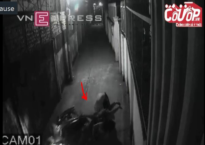 Hai tên cướp chạy xe bám theo cô gái. Trước đó chúng nhìn thấy cô vừa nghe điện thoại rồi bỏ vào cặp. Khi cô vừa đi vào con hẻm vắng người, chúng liền áp sát xe máy lại gần rồi giật chiếc túi.
