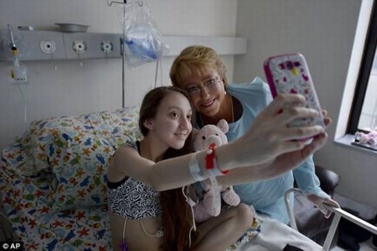 ValentinaMoureira đã trở thành chủ đề bàn luận trên Twitter Chile. Tổng thống Bachelet cũng đã có chuyến thăm cô gái.