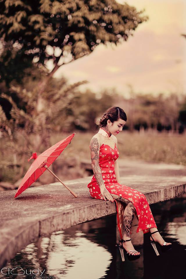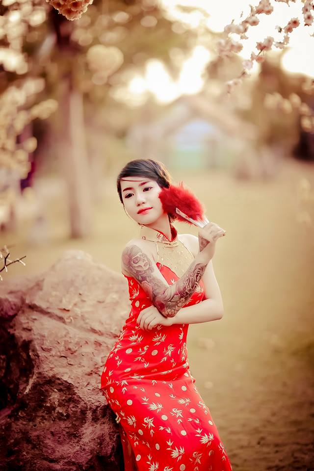 Mới đây, hình ảnh Tuyết Nhi dịu dàng, xinh đẹp trong bộ sườn xám, khoe trọn hình xăm trên cánh tay và chân đã đặc biệt thu hút sự chú ý của cộng đồng mạng.