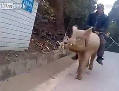 Old  Default Clip dân chơi cưỡi lợn đi làm gây xôn xao