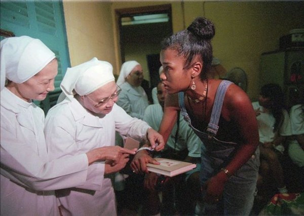 Loan Shillinger, ở San Francisco, trong chuyến quay về Sài Gòn, nay đã là TP Hồ Chí Minh, vào tháng 6/1996. Shillinger là một trong những đứa trẻ Mỹ đưa ra khỏi Việt Nam suốt những ngày cuối của cuộc chiến tranh. Cô đưa vòng tay đánh số sơ sinh, cùng tên và địa chỉ của trại trẻ cũ để hỏi thăm thông tin từ các xơ.