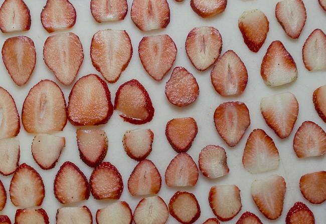 Làm nóng lò nướng đến 200 độ. Cắt dâu tây theo chiều dọc như mỏng càng tốt.