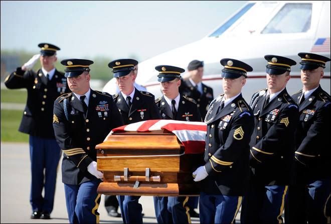 Di hài Đại Úy lục quân Bruce Kevin Clark về đến sân bay Rochester International Airport, New York.