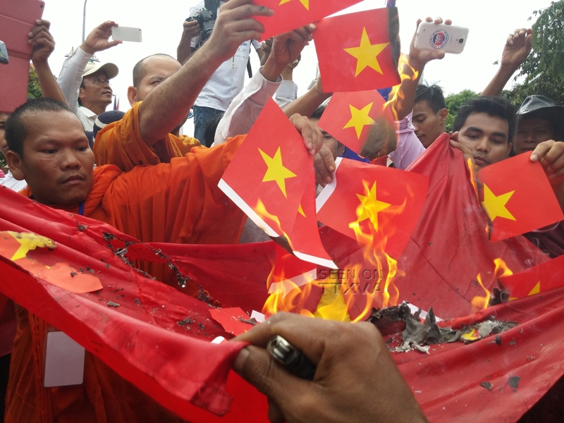 Dẫm lên cờ Việt Cộng để biểu hiện lòng yêu Campuchia