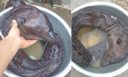 Con cá này có đầu giống khủng long, thân như cá chình nhưng phải lớn gấp đôi.