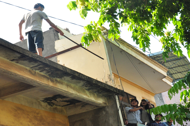 Sau 20 phút bạn gái xuất hiện, Tân lao từ mái nhà, bám vào cây xanh ven đường để xuống đất.