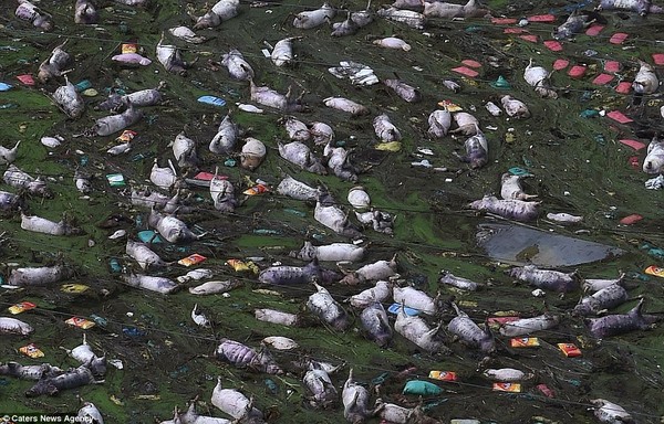 Hình ảnh nơi 16.000 con lợn chết trôi.