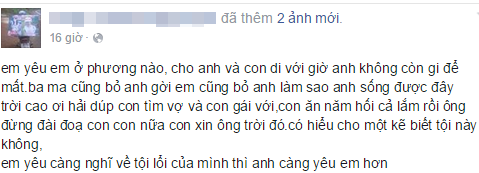 Những dòng tâm sự của anh Tùng trên facebook cá nhân.