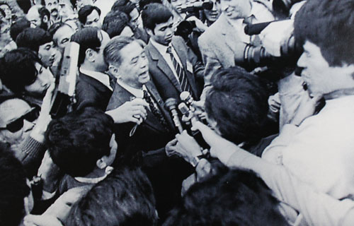 Tổng bí thư Nguyễn Văn Linh trả lời báo chí sau khi bế mạc Đại hội VI. Ảnh tư liệu.