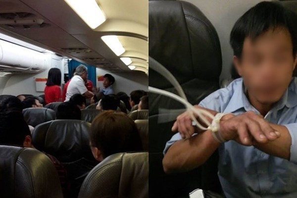 Hành khách la hét, gào khóc trên máy bay khiến cho nhân viên hàng không phải trói tay lại để khống chế và đảm bảo an toàn cho chuyến bay.