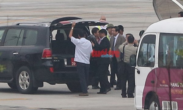 Trước thời điểm máy bay hạ cánh, một số ôtô mang BKS quân sự đã chờ sẵn ở sân đỗ phía sau nhà ga VIP sân bay Nội Bài. Khu vực này không hề có xe y tế nào túc trực.