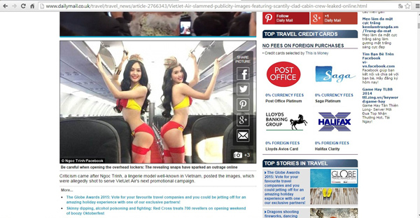 Bài báo có nội dung: "Sau khi Ngọc Trinh, người mẫu nổi tiếng của Việt Nam, đăng tải những hình ảnh mặc bikini thiết kế theo logo của một hãng hàng không lên trang cá nhân của mình, hãng này đã phải nhận sự chỉ trích gay gắt từ dư luận. Nhiều người cho rằng hãng hàng không này đang lợi dụng 'da thịt' phụ nữ để quảng bá thương hiệu của mình".