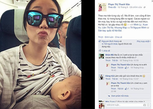 Thèm thuồng nhìn Ốc Thanh Vân vạch áo cho con bú trên máy bay