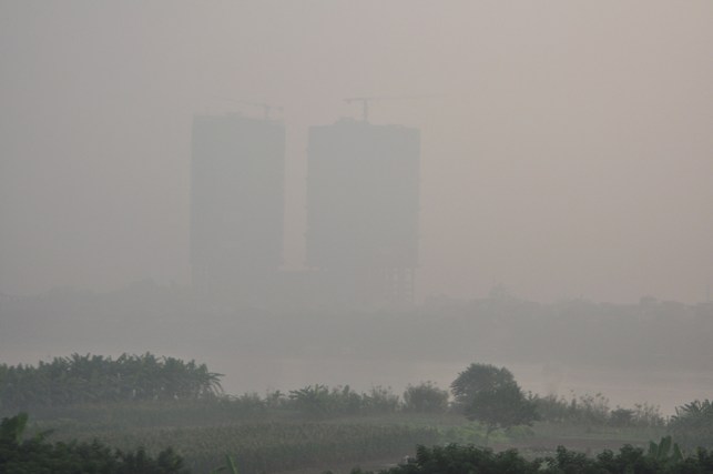 Sáng 20.10 tại Hà Nội, một lớp sương mù bao phủ khá dày trên diện rộng.