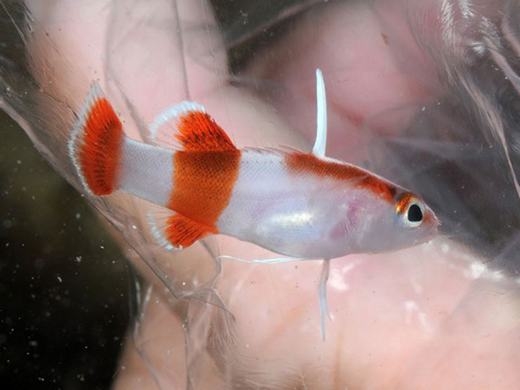 Bạn đoán chú cá này có giá bao nhiêu? 10.000 USD (khoảng 224 triệu đồng) đấy nhé! Điểm đặc trưng của nó là màu cam và trắng xen kẽ trên cơ thể, cộng thêm chiếc vây giống như một cái sừng nhỏ trên lưng khiến nhiều người mê mẩn.