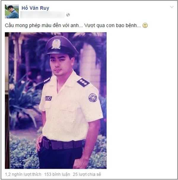 Diễn viên Hồ Văn Ruy chia sẻ trên facebook cá nhân