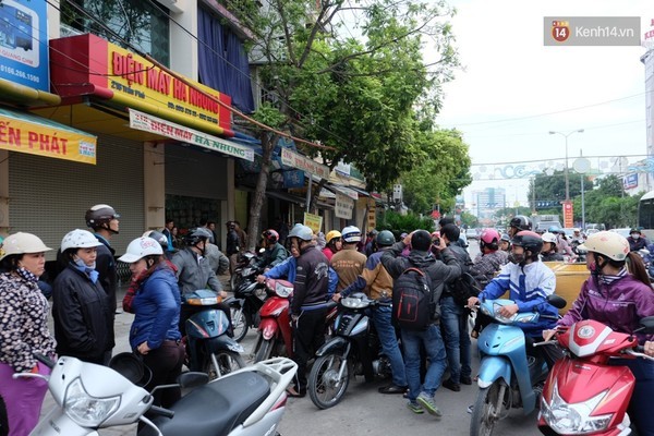 Nhiều người vây quanh nhà nạn nhân vào sáng ngày phát hiện ra sự việc