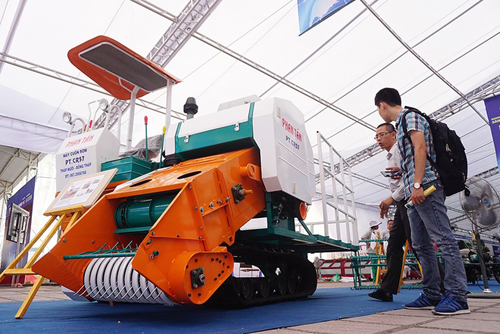 Chiếc máy cuốn rơm tự hành có mặt tại Techmart 2015. Ảnh: Giang Huy.