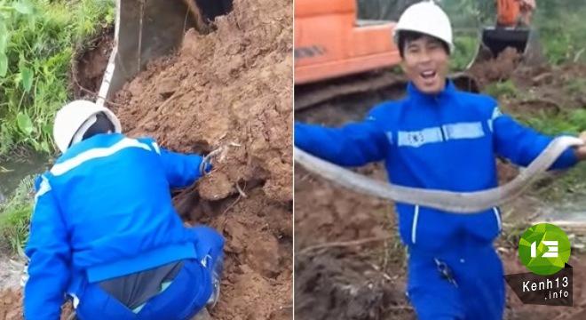 Không cần dùng gậy, hay dùng kích điện như lời khuyên của nhiều người, anh công nhân này vẫn cẩn thận từng chút một khuất phục con rắn. Cuối cùng, anh đã thành công trong việc dùng tay không tóm gọn con rắn trong sự khâm phục và thích thú của nhiều người.
