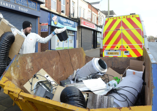Cảnh sát tịch thu các trang thiết bị của trang trại cần sa của người Việt ở thị trấn South Shields. Ảnh: Shields gazette